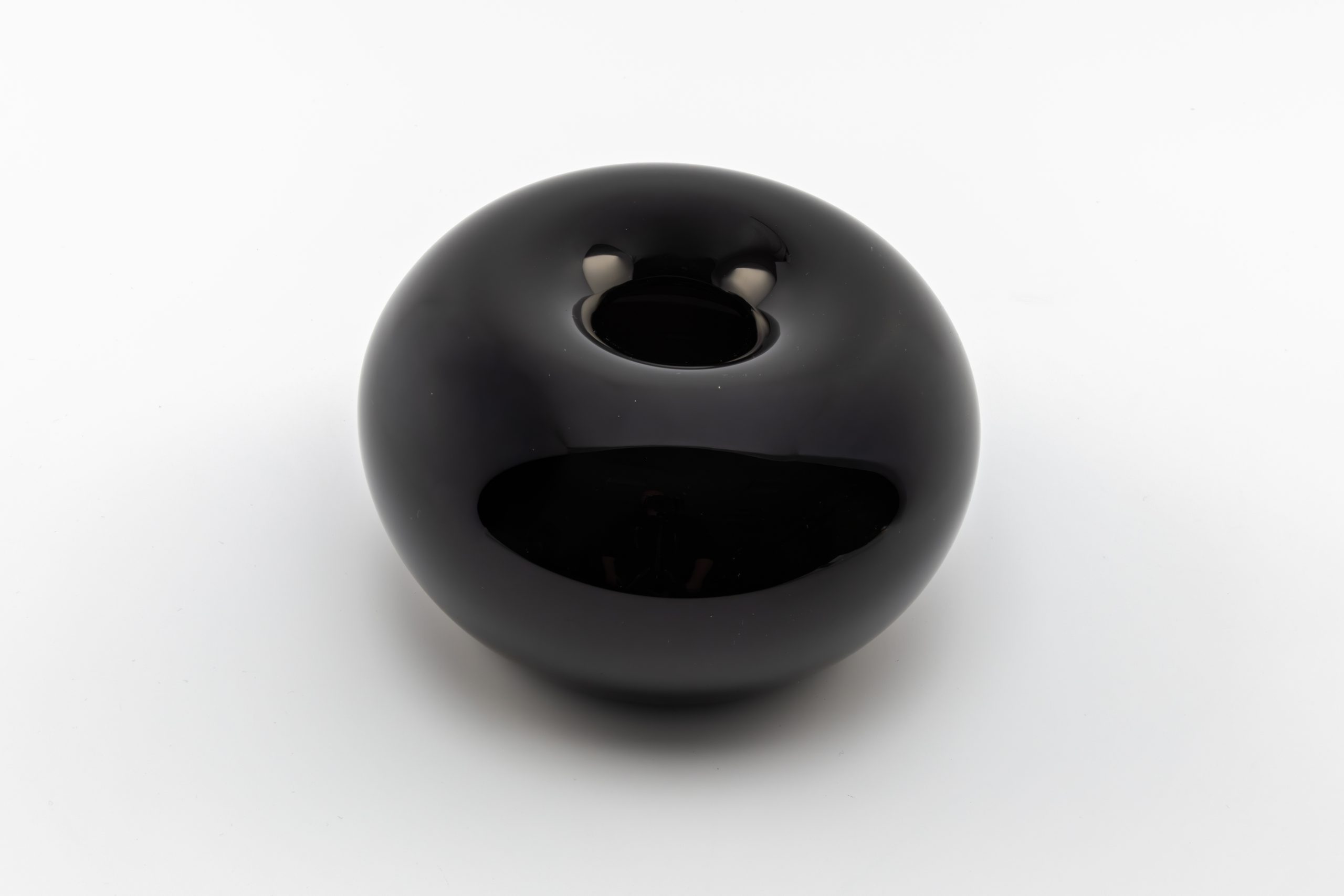 Each vase is hand-blown in black or white glass, sometimes with subtle vertical stripes that enhance the sense of movement and direction. Torus is a meeting between stillness and dynamism – a reminder of the invisible forces that hold the world together.