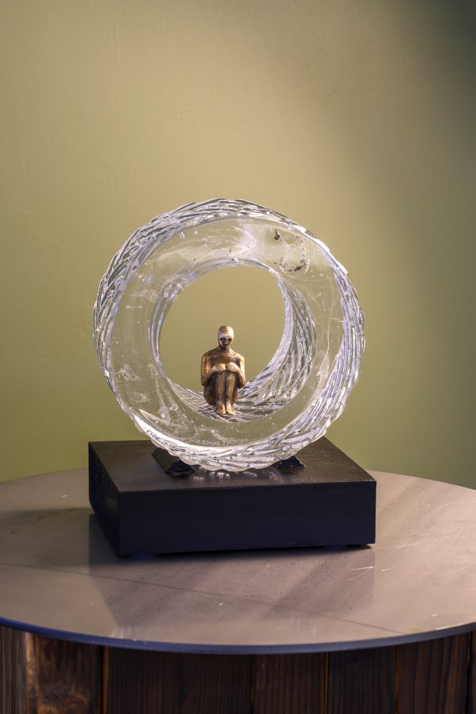 Since establishing his own series production at Orranäs Glasbruk in Orrefors, Chytraeus has created a number of iconic works that invite the viewer to reflect. His design language is rhythmic and figurative, often charged with symbolism and philosophical undertones. The series *Livets Hjul* (The Wheel of Life) depicts the cyclical nature of existence through dynamic, rotating forms that capture movement and time in the transparency of glass. The elegant *Grail* works, with their stylized cups and bowls, weave together mythology, spirituality, and aesthetics into a harmonious whole.