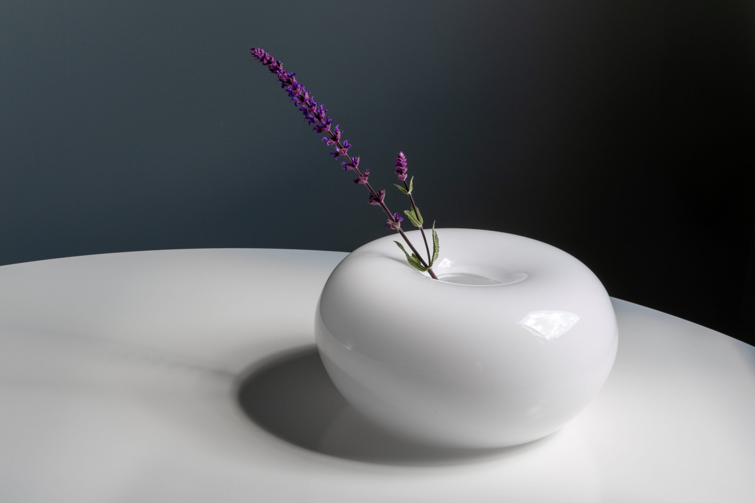 Varje vas är handblåst i svart eller vitt glas, ibland med subtila vertikala ränder som förstärker känslan av rörelse och riktning. Torus är ett möte mellan stillhet och dynamik – en påminnelse om det osynliga som håller världen samman.
